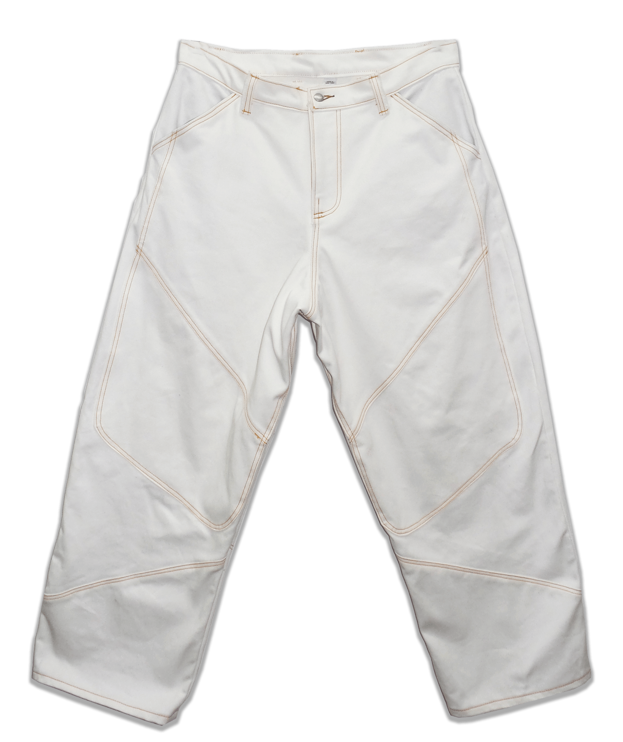 White 14oz Denim YaTuSabe Double Knee Detail 4 Pocket Styling Made by Designer Made In NYC Please allow 3 weeks for Processing&Shipping